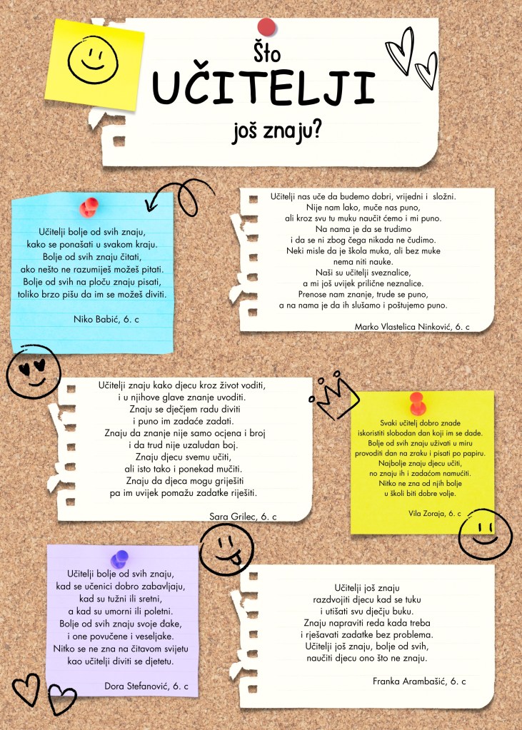 Povodom Svjetskoga dana učitelja, učenici 6. c razreda napisali su pjesme na temu “Što učitelji još znaju?”.